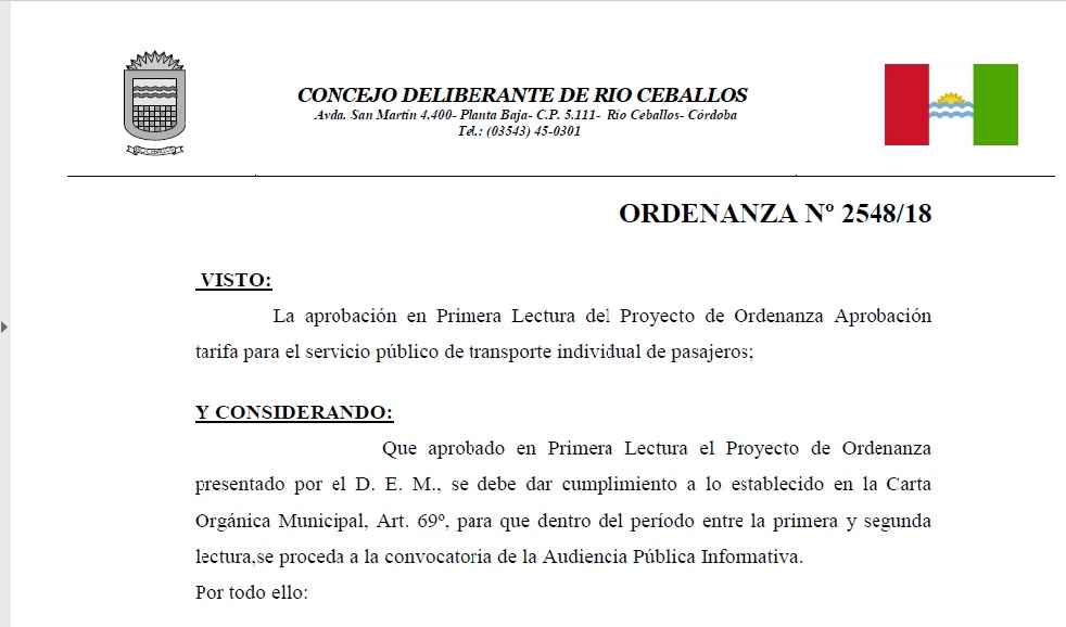 El Concejo Deliberante convoca Audiencia Pública para informar sobre el Proyecto de Ordenanza referido a “Aumento de Tarifa de Taxi”