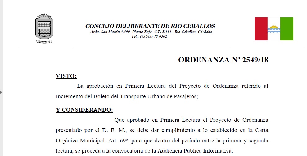 El Concejo Deliberante convoca Audiencia Pública para informar sobre el Proyecto de Ordenanza referido a “Aumento de Tarifa de Transporte Urbano de Pasajeros”