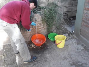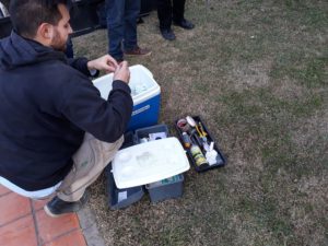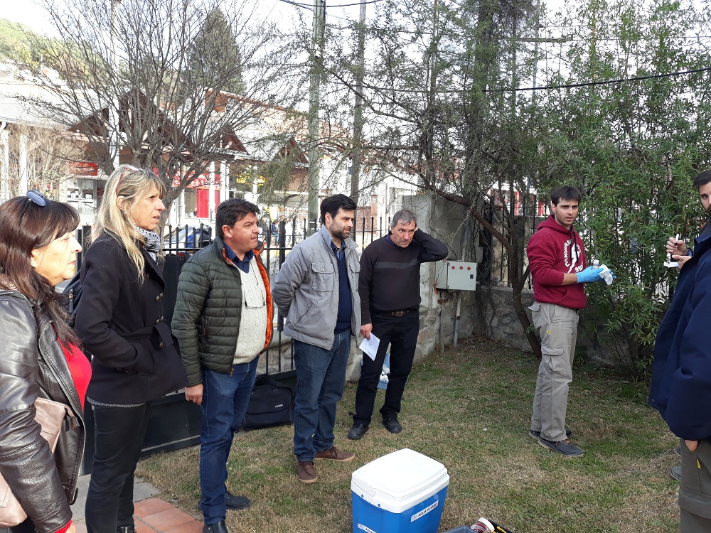 La toma de muestras estuvo a cargo de los Ingenieros Químicos Matías Vercelli y Marcos Pascualone del Departamento de CIQA y se llevó a cabo en la Cisterna 7 (Cooperativa de Agua), Cisterna 6 (Av. Sarmiento 985), Cisterna 2 (Alem 159), Planta Potabilizadora y en una vivienda familiar en calle Mosconi 415.